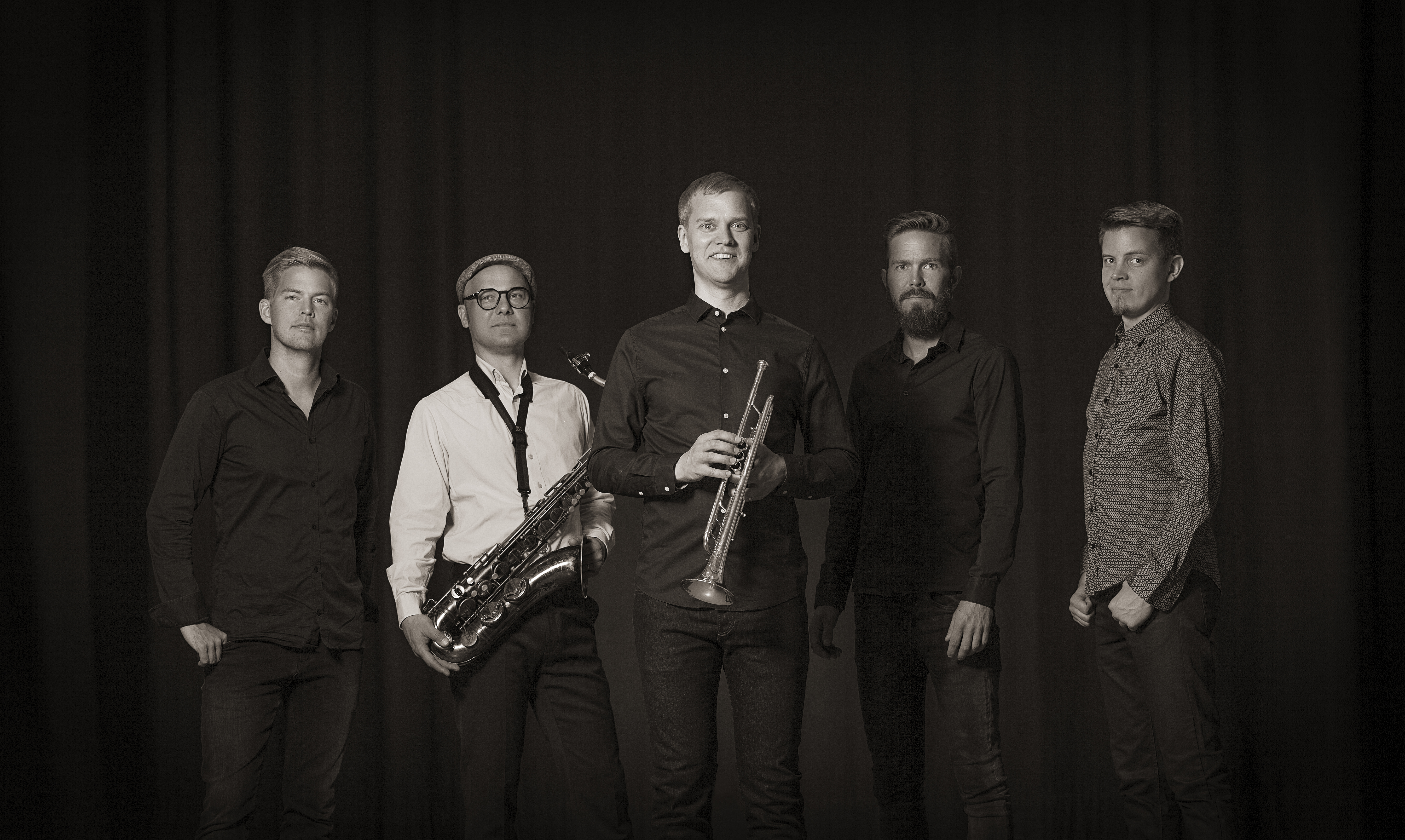 Press-Picture_01-Martti-Vesala-Soundpost-Quintet_Joonas-Haavisto_Ville-Pynssi_Tuukka-Tervo_Martti-Vesala_Petri-Puolitaival_Juho-Kivivuori_by-Verna-kovanen